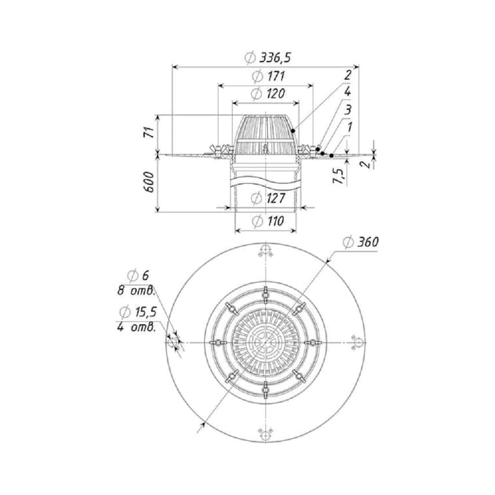 Кровельная воронка Татполимер ТП-02.100/6 11505