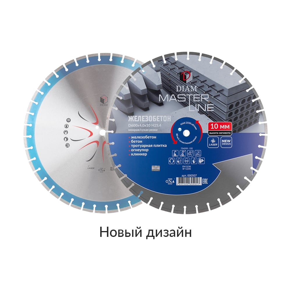 Круг алмазный сегментный 1A1RSS Master Line (600х25.4 мм) по железобетону Diam 000507