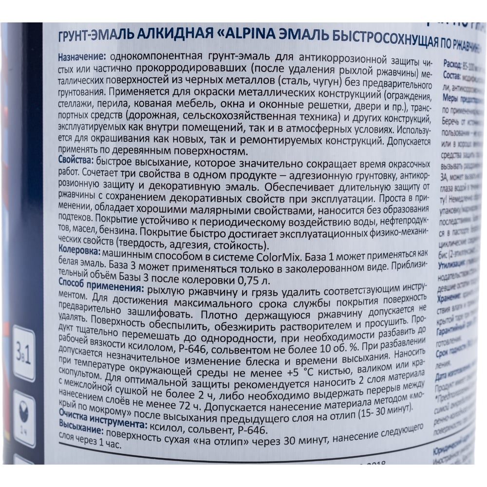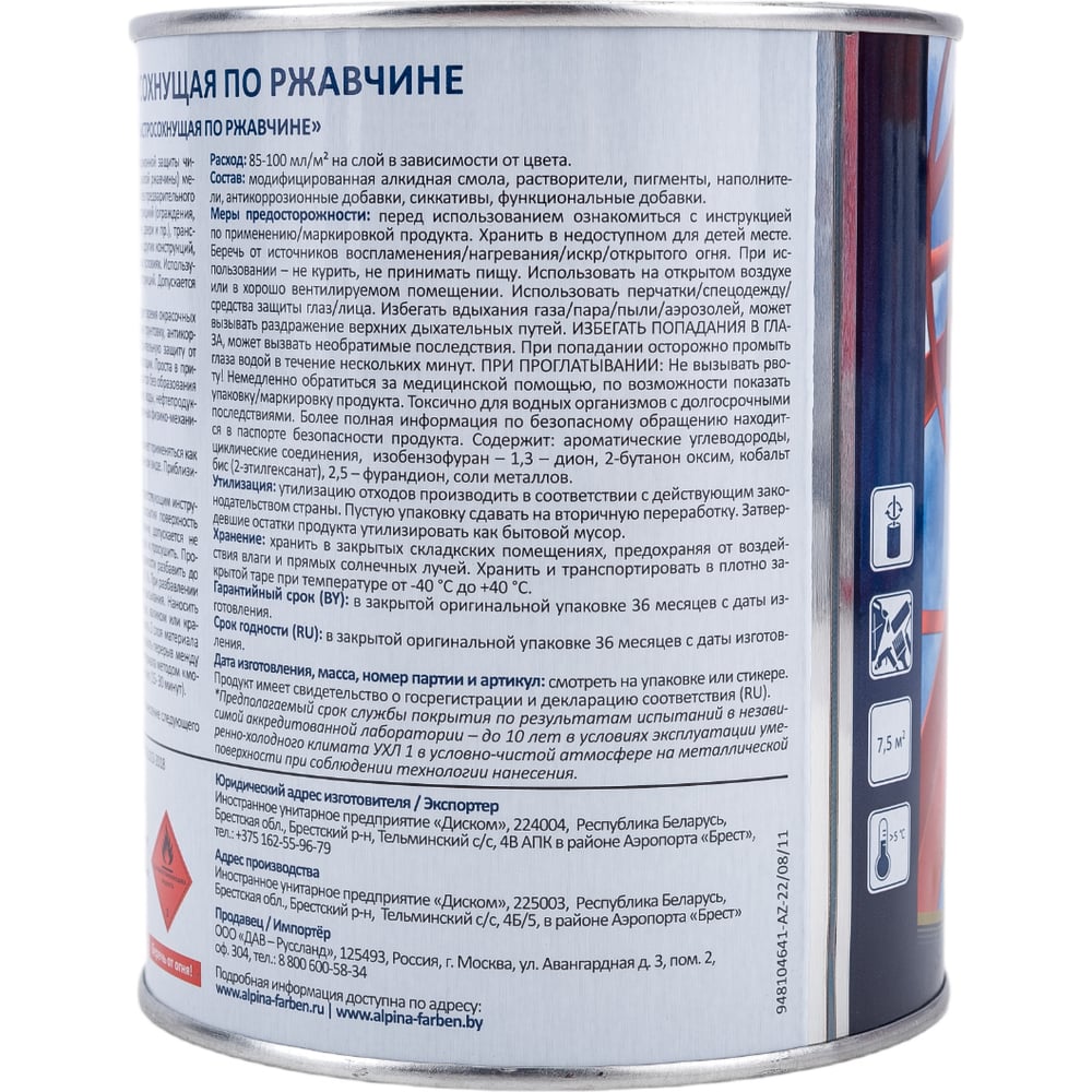 Быстросохнущая эмаль по ржавчине ALPINA 948104218