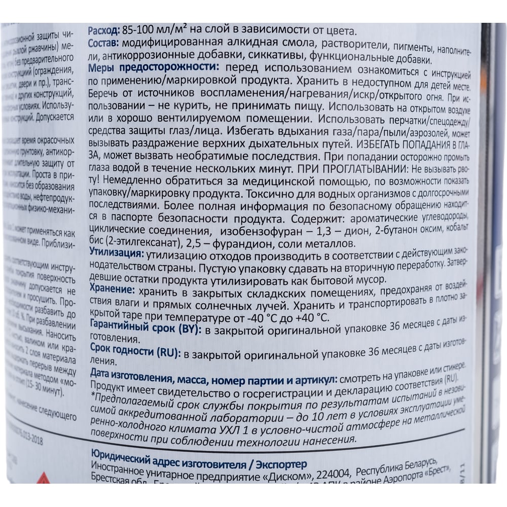 | Расход краски | 0.1 кг/м² |
