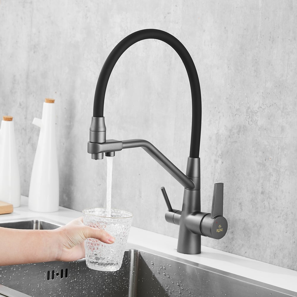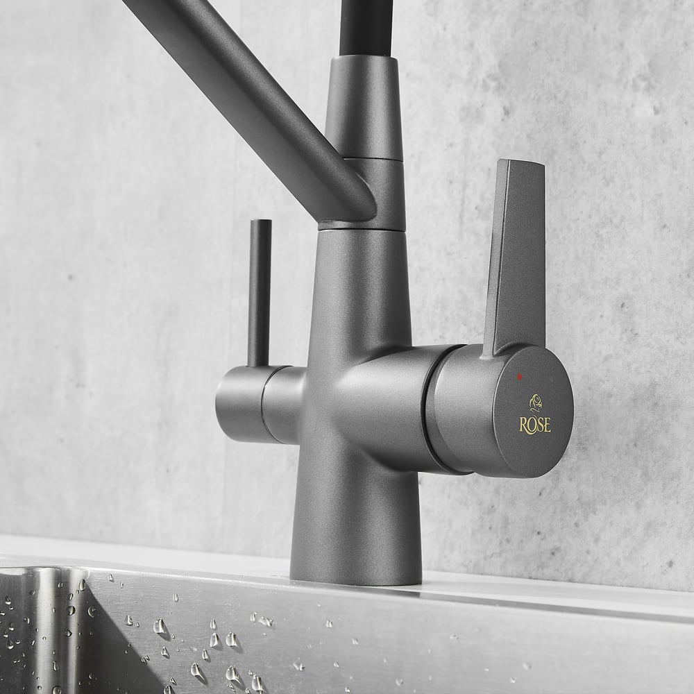 Смеситель для кухни ROSE с подключением к фильтру питьевой воды, темно-серый R558Y