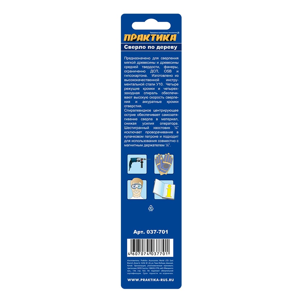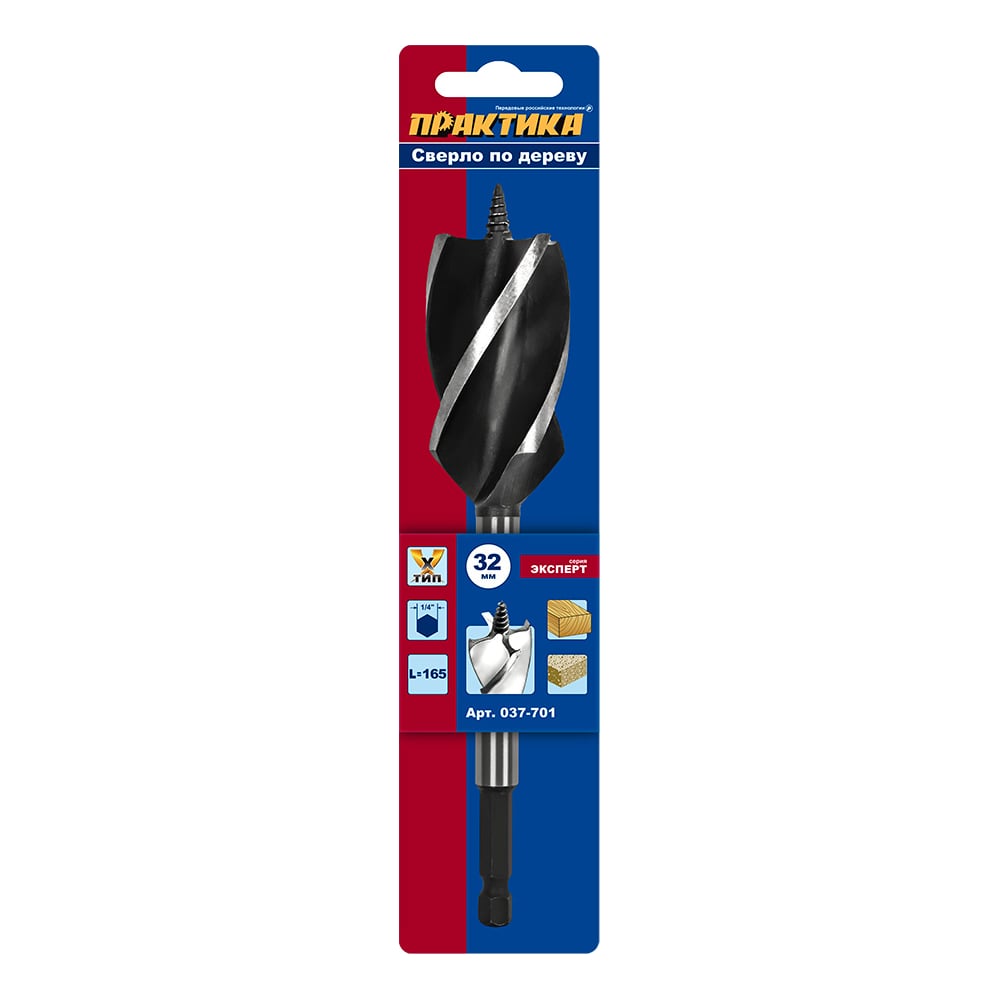 Сверло по дереву X-тип (32x165 мм; в блистере) ПРАКТИКА 037-701