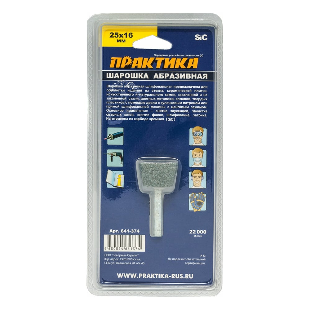 Шарошка абразивная (25х16 мм; хвостовик 6 мм) ПРАКТИКА 641-374