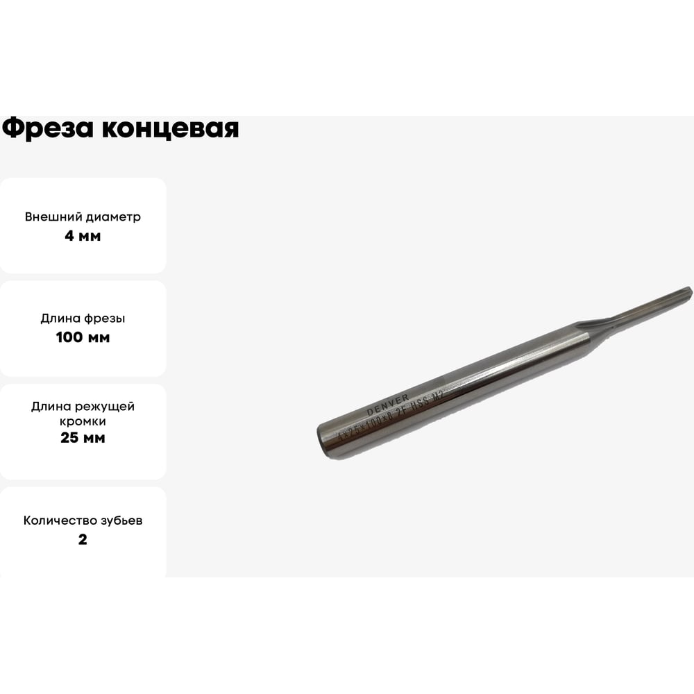 Внешний диаметр 4 мм Материал HSS (быстрорежущая) Вид концевая Тип пазовая прямая Тип хвостовика цилиндрический ГОСТ нет Диаметр хвостовика 8 мм Количество зубьев 2 шт Длина фрезы 100 мм Длина режущей кромки 25 мм