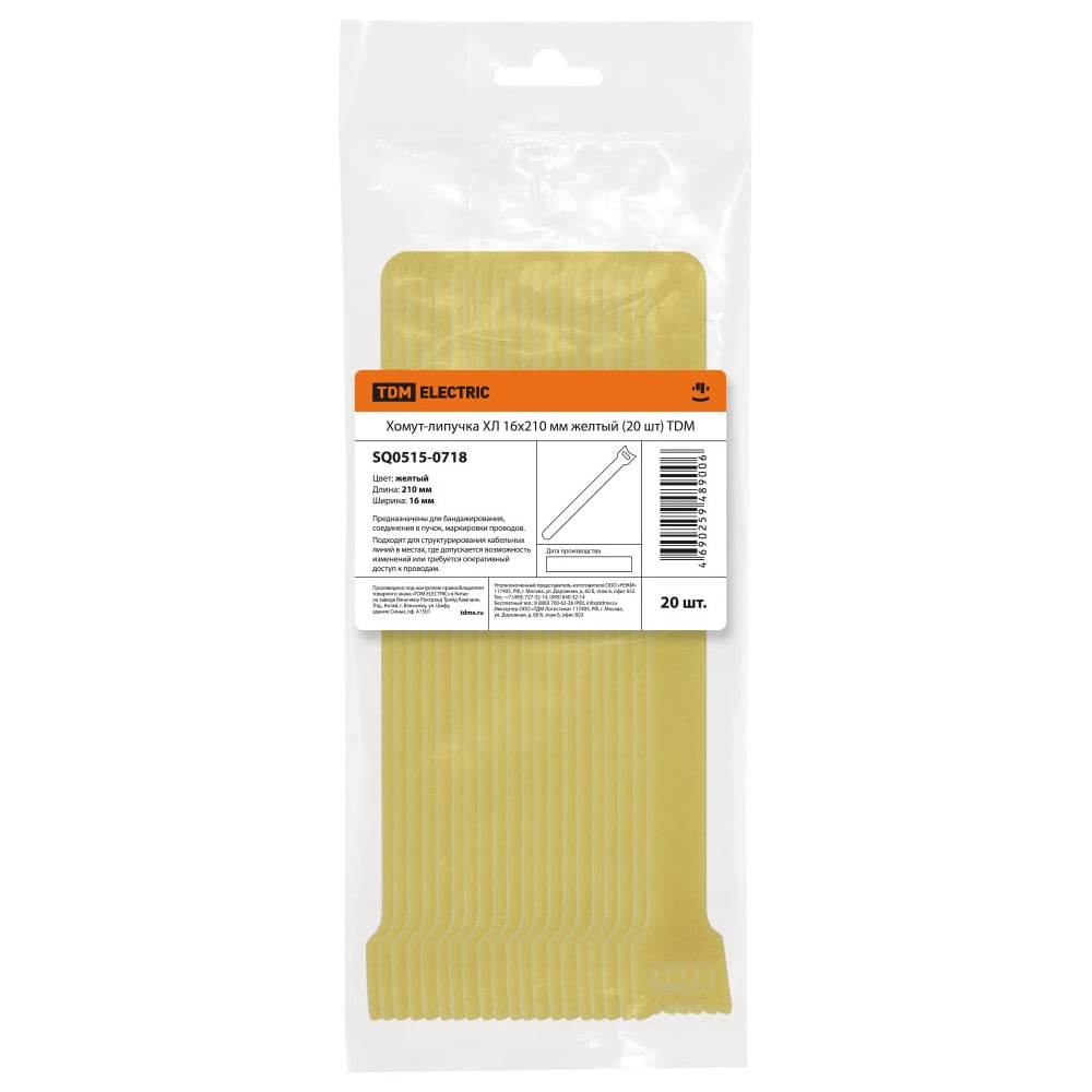 Хомут-липучка TDM ELECTRIC ХЛ 16x210 мм, желтый, 20 шт. SQ0515-0718