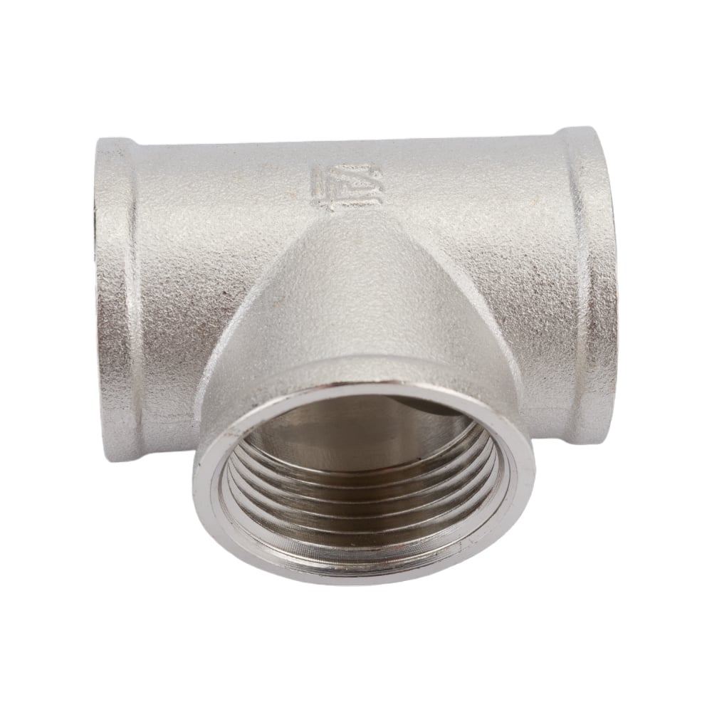 Материал никелированная латунь Класс товара полупрофессиональный Тип фитинга тройник Размеры резьб 3/4-3/4-3/4 дюйм Тип соединения внутренняя-внутренняя-внутренняя Размер верхнего отверстия 3/4F Размер боковых отверстий 3/4F-3/4F