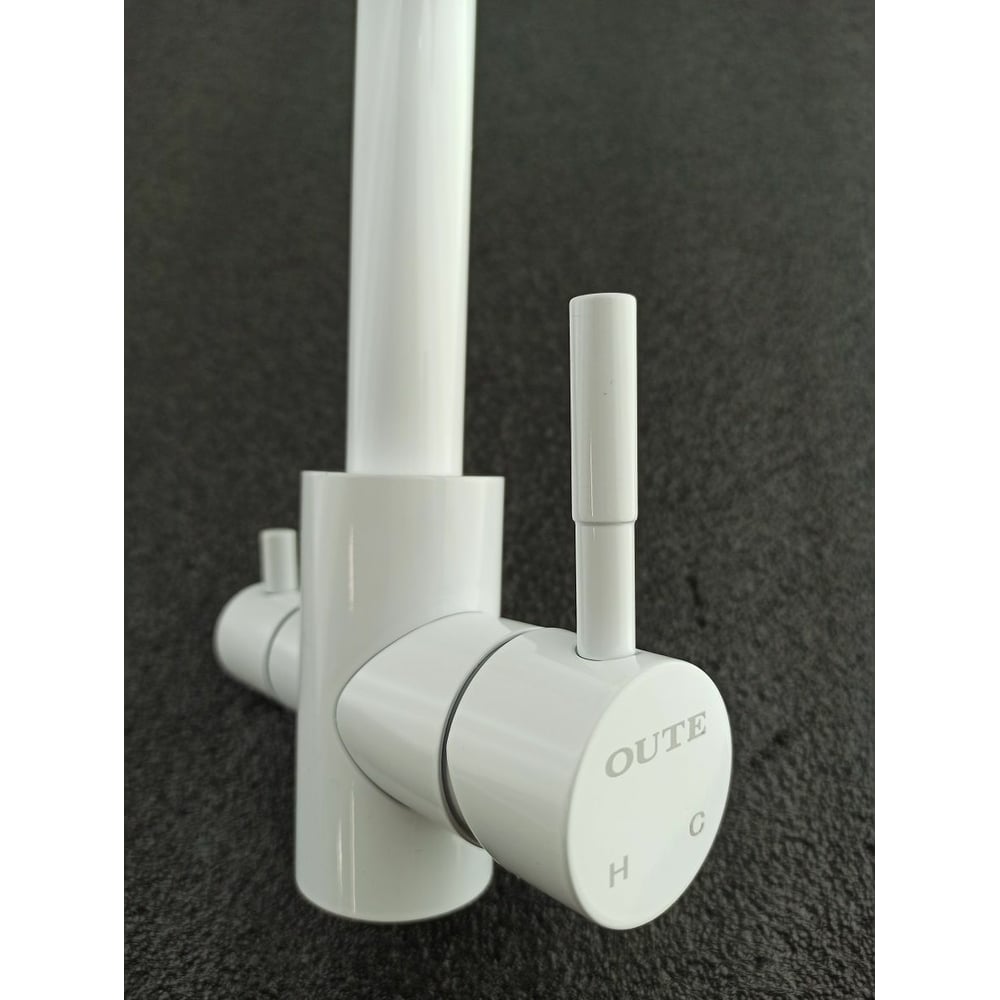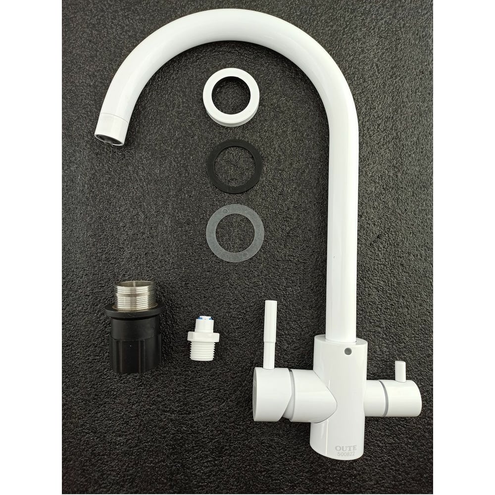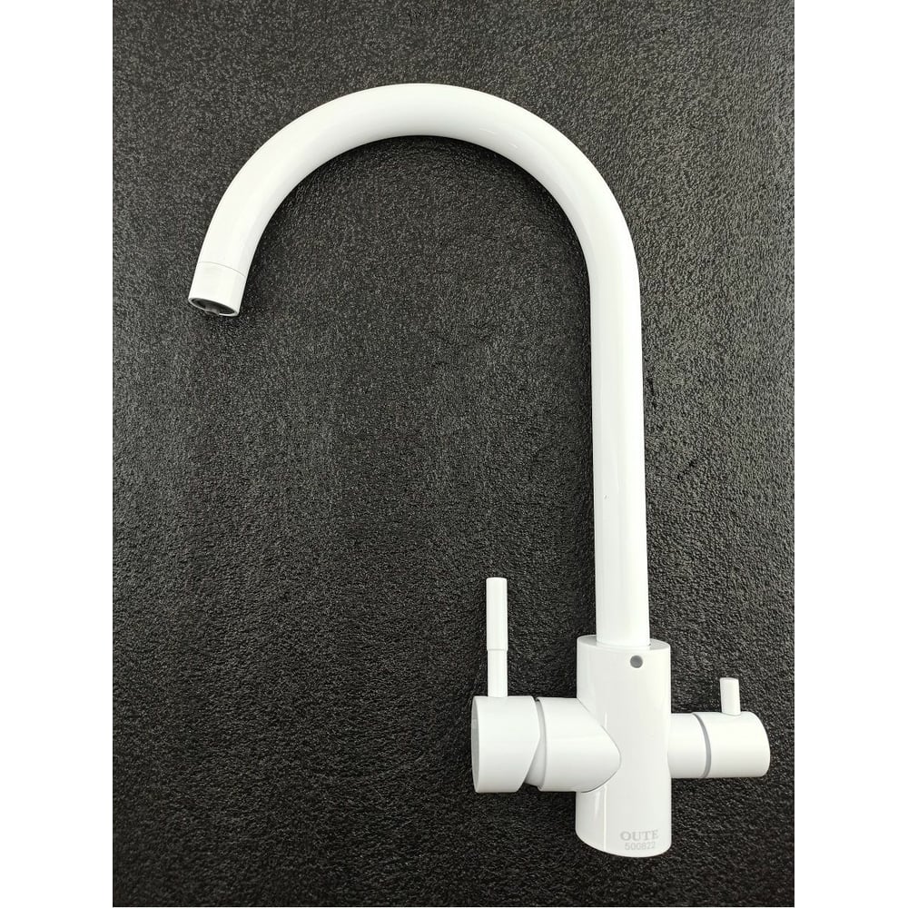 Смеситель для кухни OUTE 370 мм однорычажный, белый, со встроенным краном под питьевую воду, нержавеющая сталь T60203CK