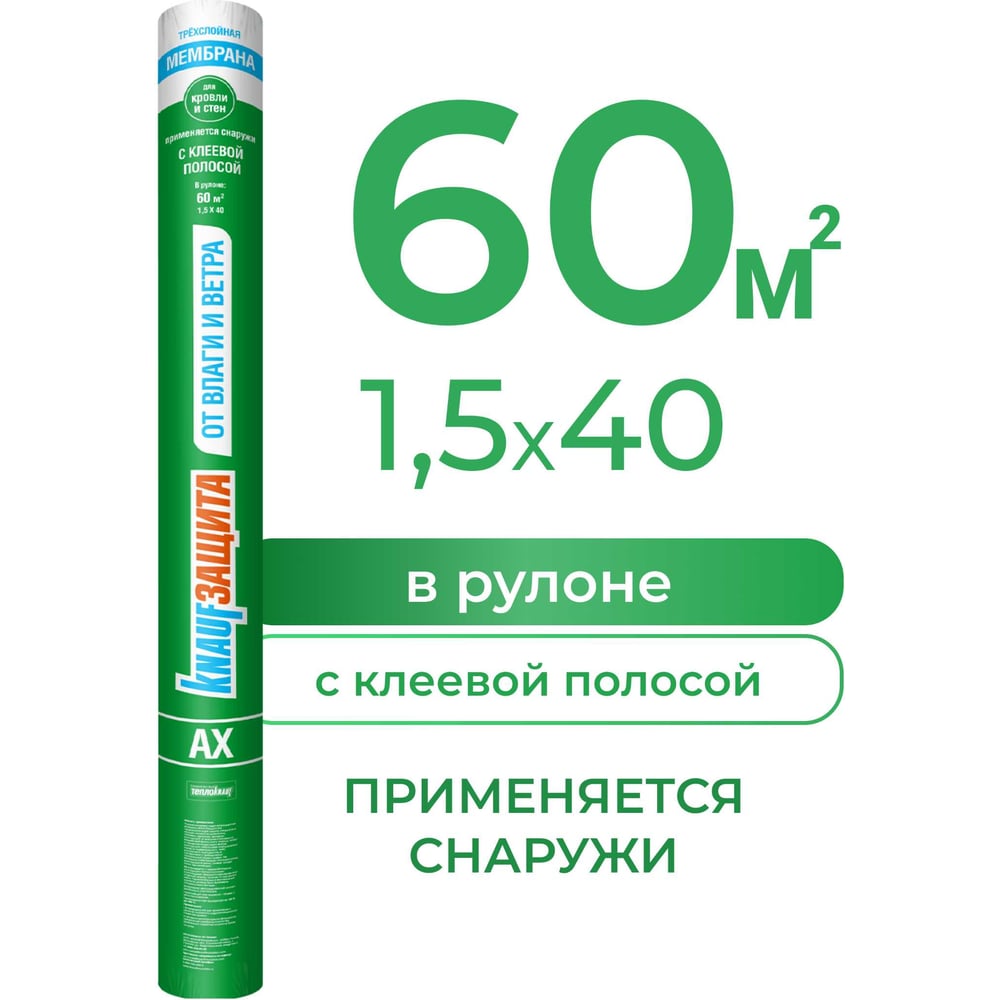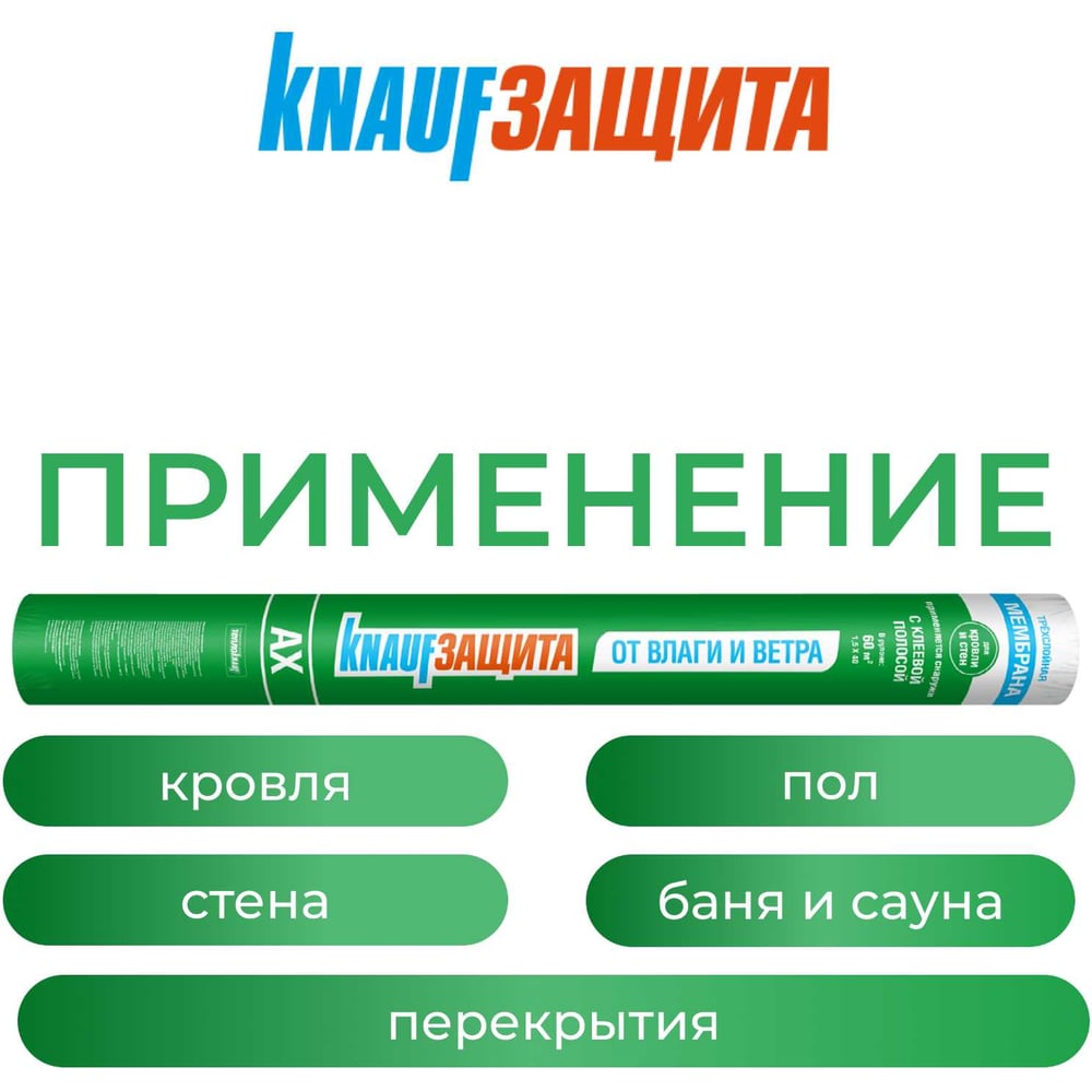 Влаго- и ветрозащитная супердиффузионная мембрана Knauf Insulation КНАУФ Защита AX 60 кв. м 733564