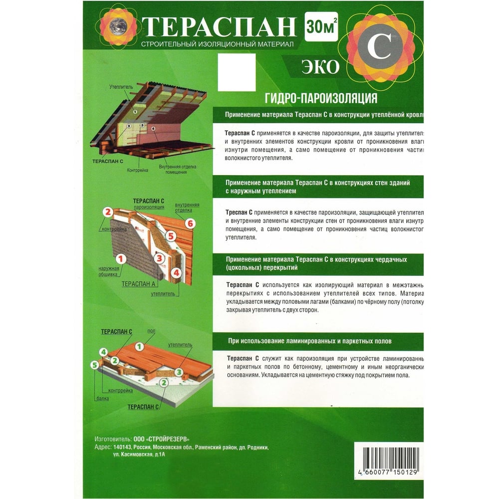 Паро-гидроизоляционный материал ТЕРАСПАН С ЭКО 30 кв. м 4660077150129