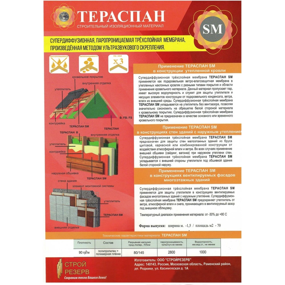 Супердиффузионная паропроницаемая трехслойная мембрана Тераспан SM 4660077150518