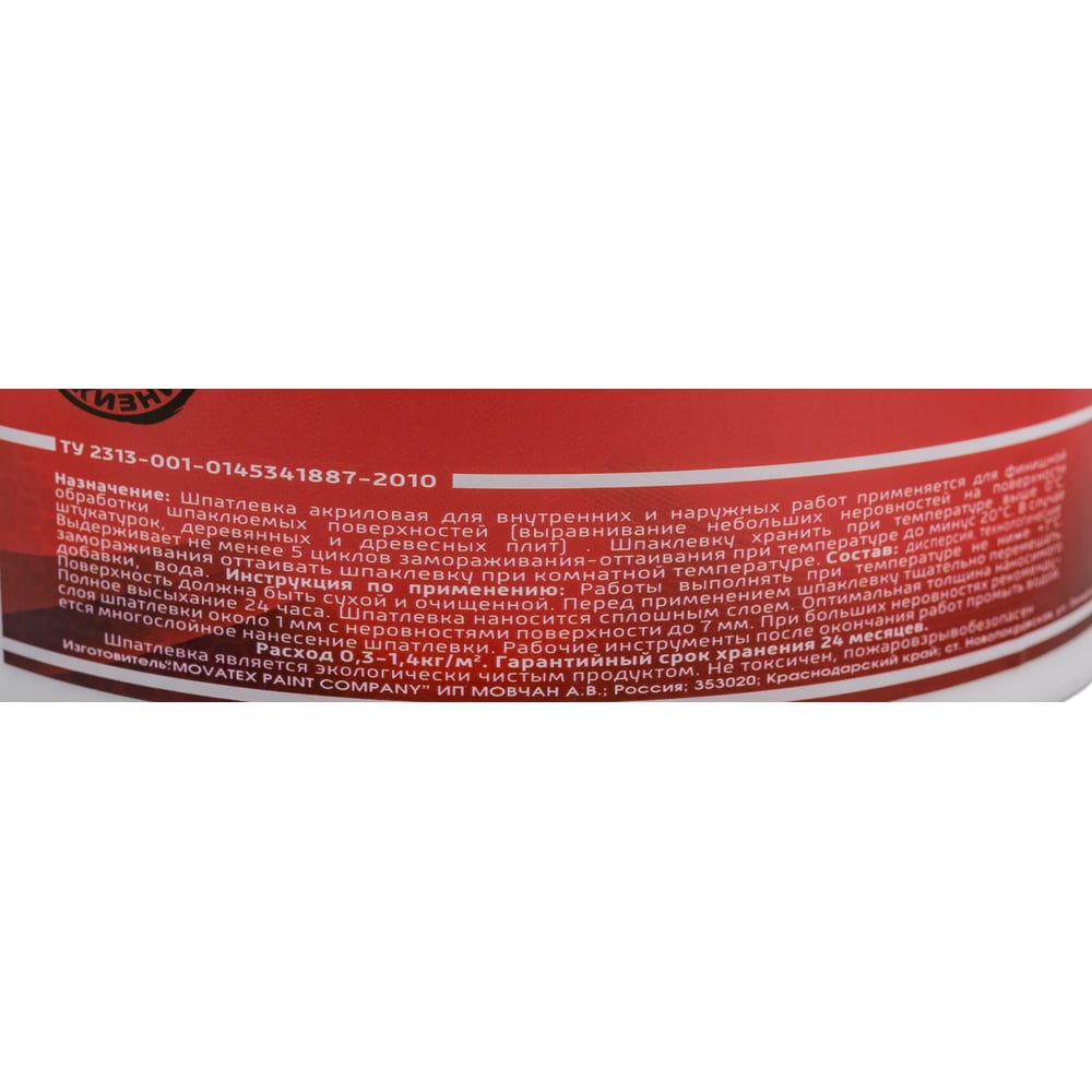 | Вид шпатлевки | финишная |