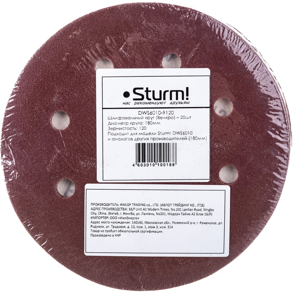 Бумага шлифовальная (20 шт; 180 мм; зерно 120; 8 отверстий) Sturm DWS6010-9120