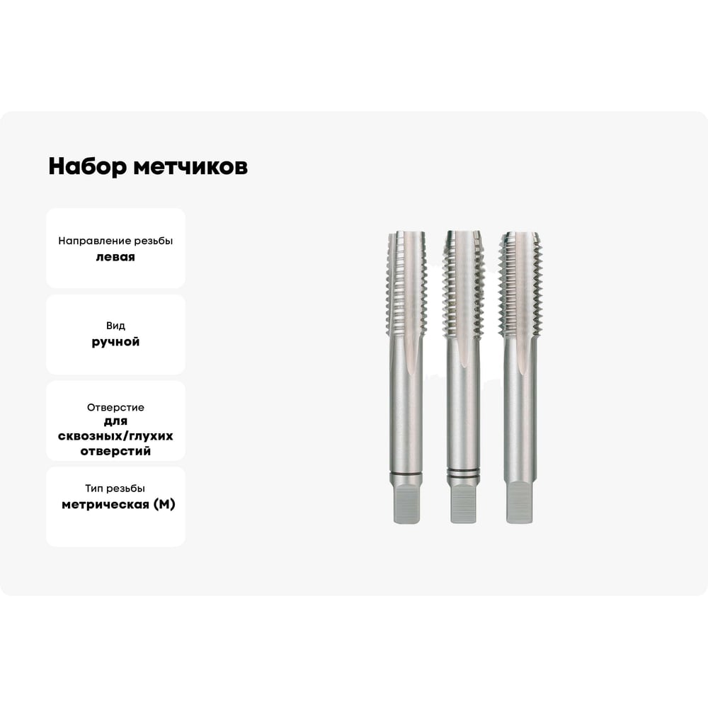 Набор метчиков Ruko из 3-х шт. М 12 Шаг 1.75 мм HSS-G левый 230120LI