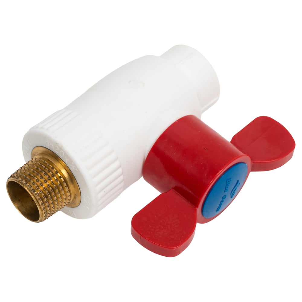 Шаровой кран Blue Ocean (шар - латунь) полипропиленовый ГВС НР - 20х1/2 PPRF/BV-HW-1B/PPR(W)-MT-20х1/2"