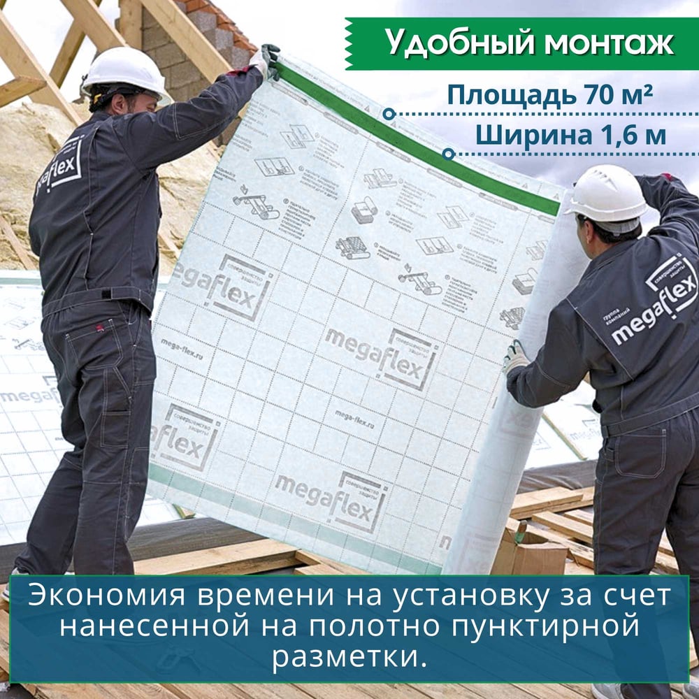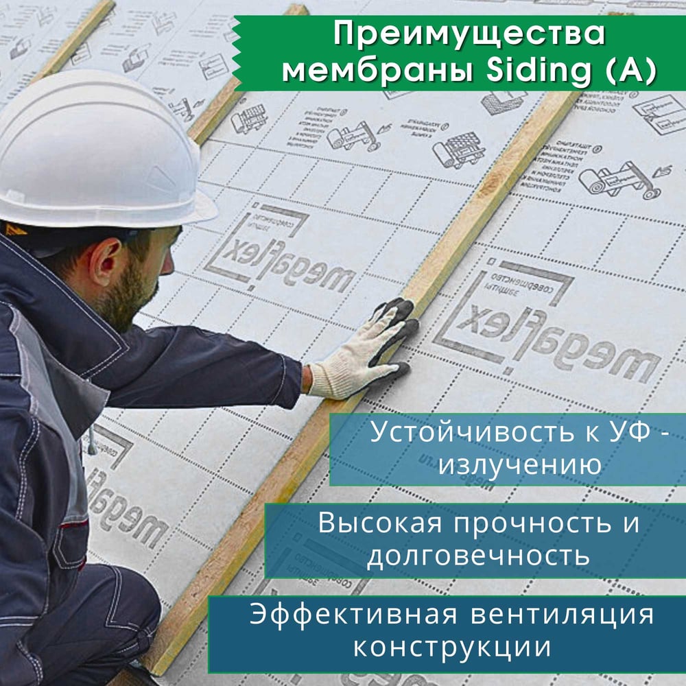 Влаго-ветрозащитная однослойная мембрана с двумя клеевыми Megaflex Siding A ш 1.6, 35 м2 MFSID.160.35