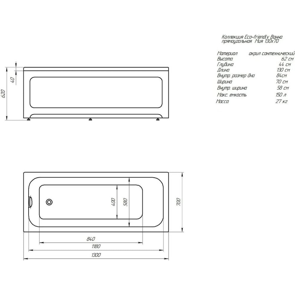 Ванна Aquatek Мия прямоугольная 130x70 см 00000089312