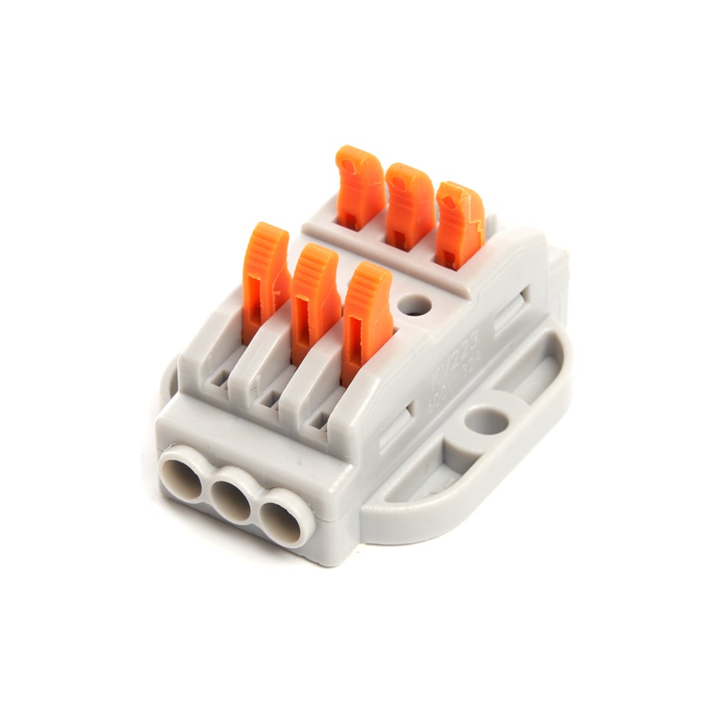 Строительно-монтажная клемма STEKKER для подключения фазных проводников, 3 контактные группы, (1 ввод,1вывод на полюс) LD222-430 39502