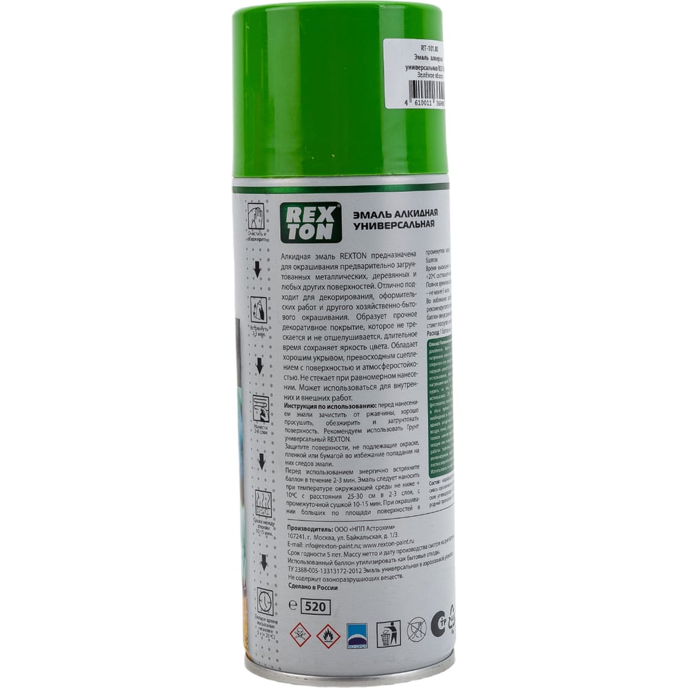 Универсальная алкидная эмаль REXTON (зеленое яблоко; аэрозоль; 520 мл) RT-101.80