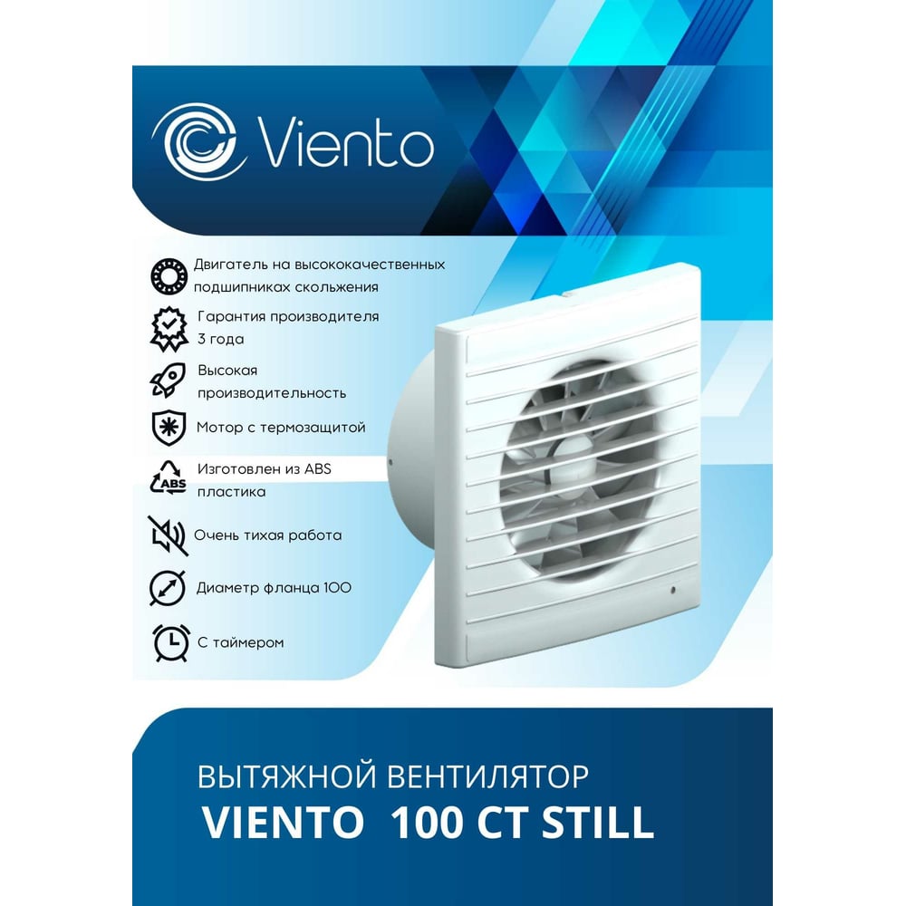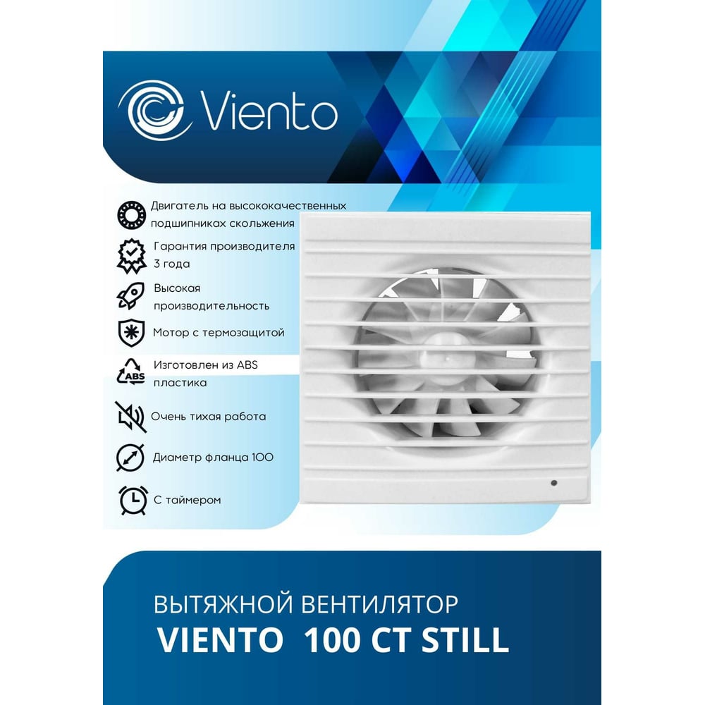 Осевой вытяжной вентилятор ВИЕНТО с таймером 100СТ STILL ВИЕНТО 100СТ STILL