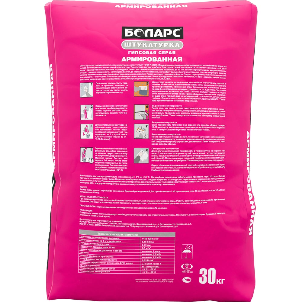 Гипсовая армированная штукатурка БОЛАРС серая, 30 кг 00000039858