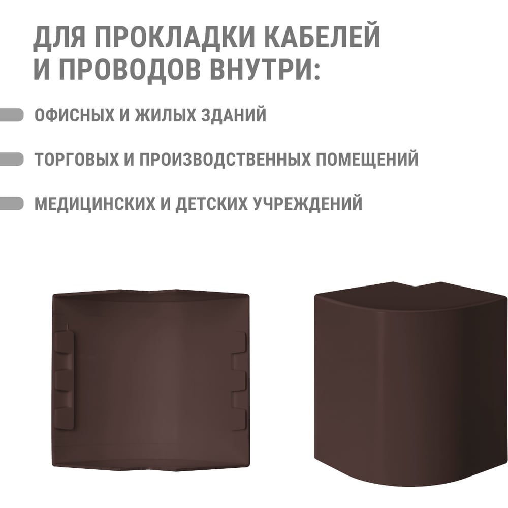 Высота 60 мм Длина 200 мм Материал ПВХ Ширина 100 мм Цвет бук Тип внешний угол Вес нетто 0.173 кг Степень защиты IP40 Количество в упаковке 2 шт Температура эксплуатации от -40 до +70 °С Цвет RAL 8022 Палитра коричневый Температура монтажа от -15 до +60 °С Климатическое исполнение УХЛ1 Размер 100х60 мм Количество вводов 2 шт Высота кабель-канала 60 мм Ширина кабель-канала 100 мм Количество отсеков 1 шт Изменяемый угол нет