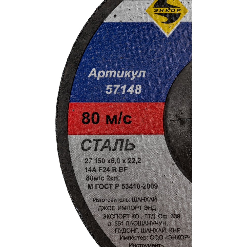 Круг шлифовальный по металлу (150х22.2 мм) для УШМ Энкор 57148