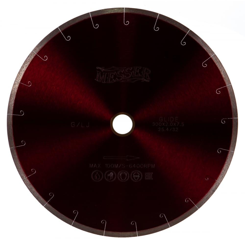 Диск алмазный сплошная кромка с микропазом G/L J-slot по граниту 300D-2.0T-7.5W-32/25.4 MESSER 01-24-300