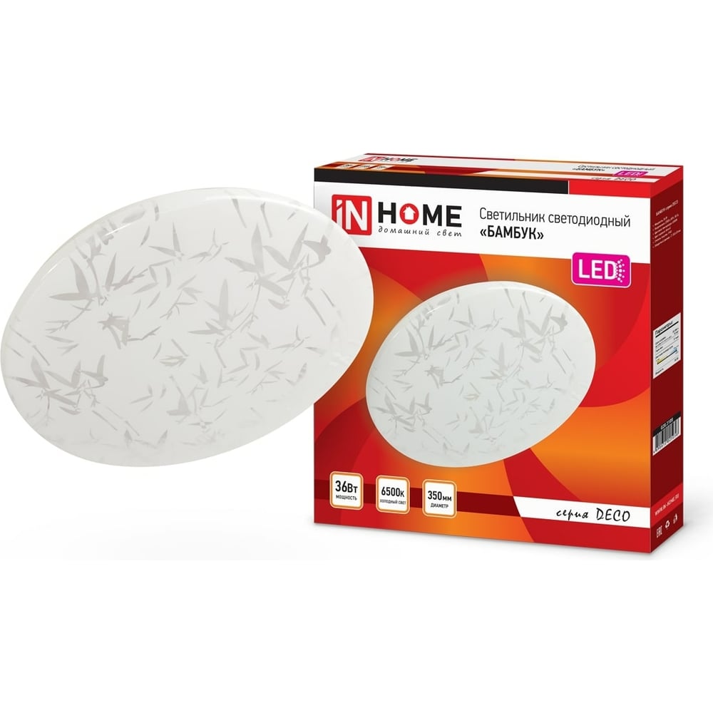 Светодиодный светильник IN HOME серии DECO 36Вт 230В 6500К 2340лм 350мм БАМБУК 4690612025056