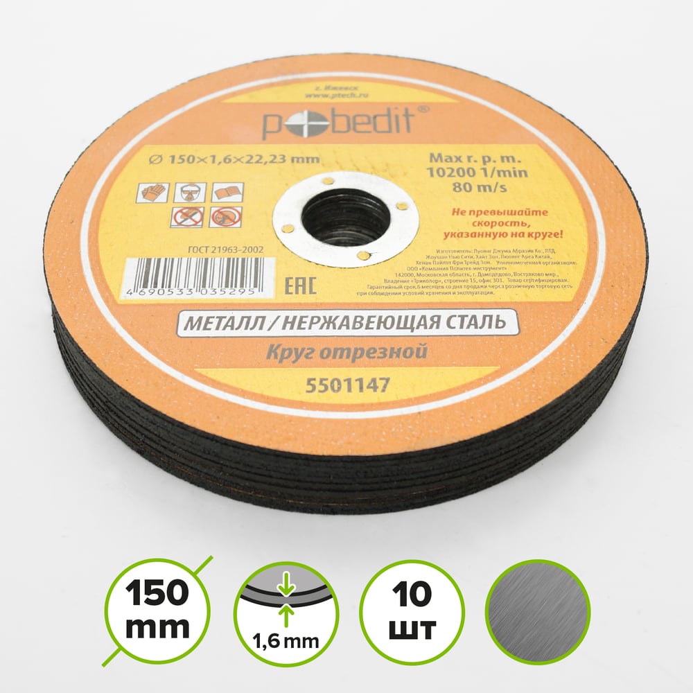 Круг отрезной по металлу 150х1.6х22.23 мм Pobedit 5501147