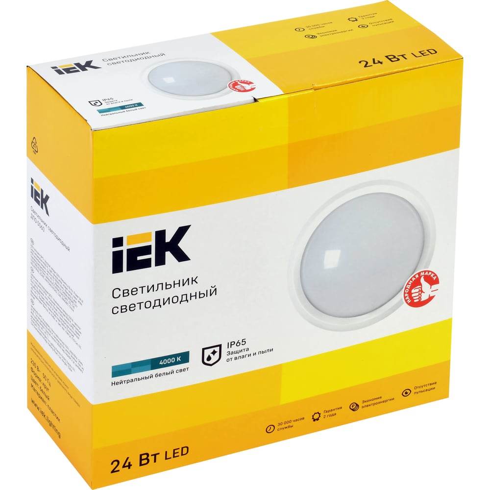 Светильник IEK LED ДПО 5060 24Вт, 4000К, IP65, круг, белый LDPO0-5060-24-4000-K01