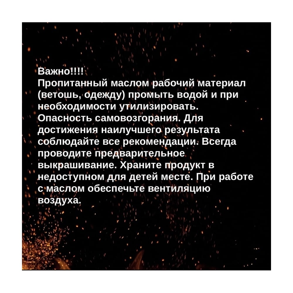 | Состав | льняное масло, древесное масло, масло касторовое, оксидированное льняное масло, воск карнауба, диоксид кремния, канифоль, алифатический углеводород, УФ-стабилизатор, диоксид титана, оксид железа, сиккатив (без свинца), антисептик. |