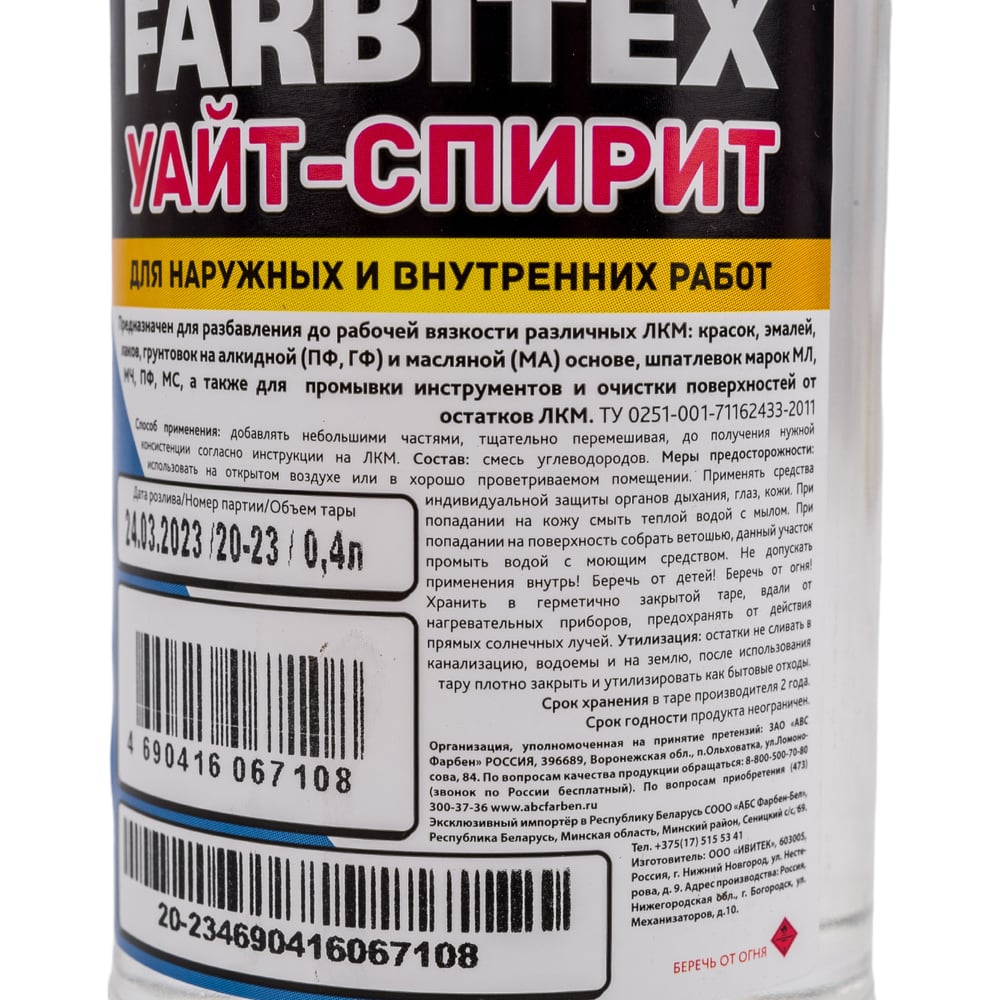 Уайт-спирит Farbitex 0.4 л 4100003271