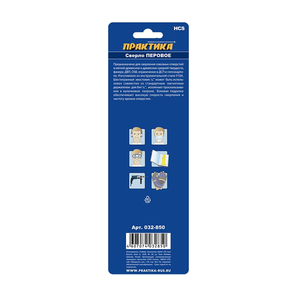 Перовое сверло по дереву ПРАКТИКА 032-850