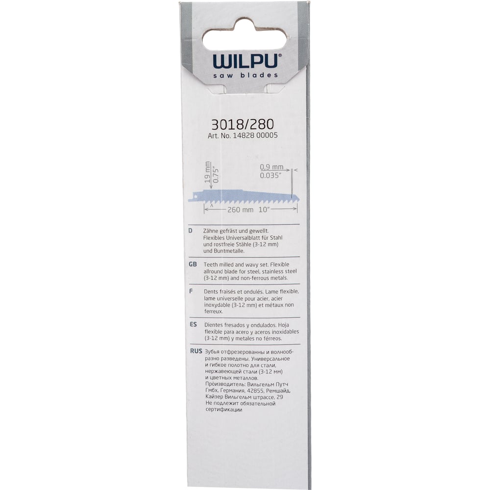 Полотно по металлу 3018/280 (5 шт; 280х19х0.9 мм; 260 мм; 10 TPI) WILPU 1482800005