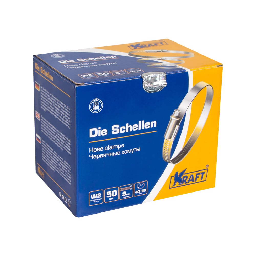Хомут KRAFT 40-60 мм, нержавеющая сталь, уп. 50 шт. KT 880408