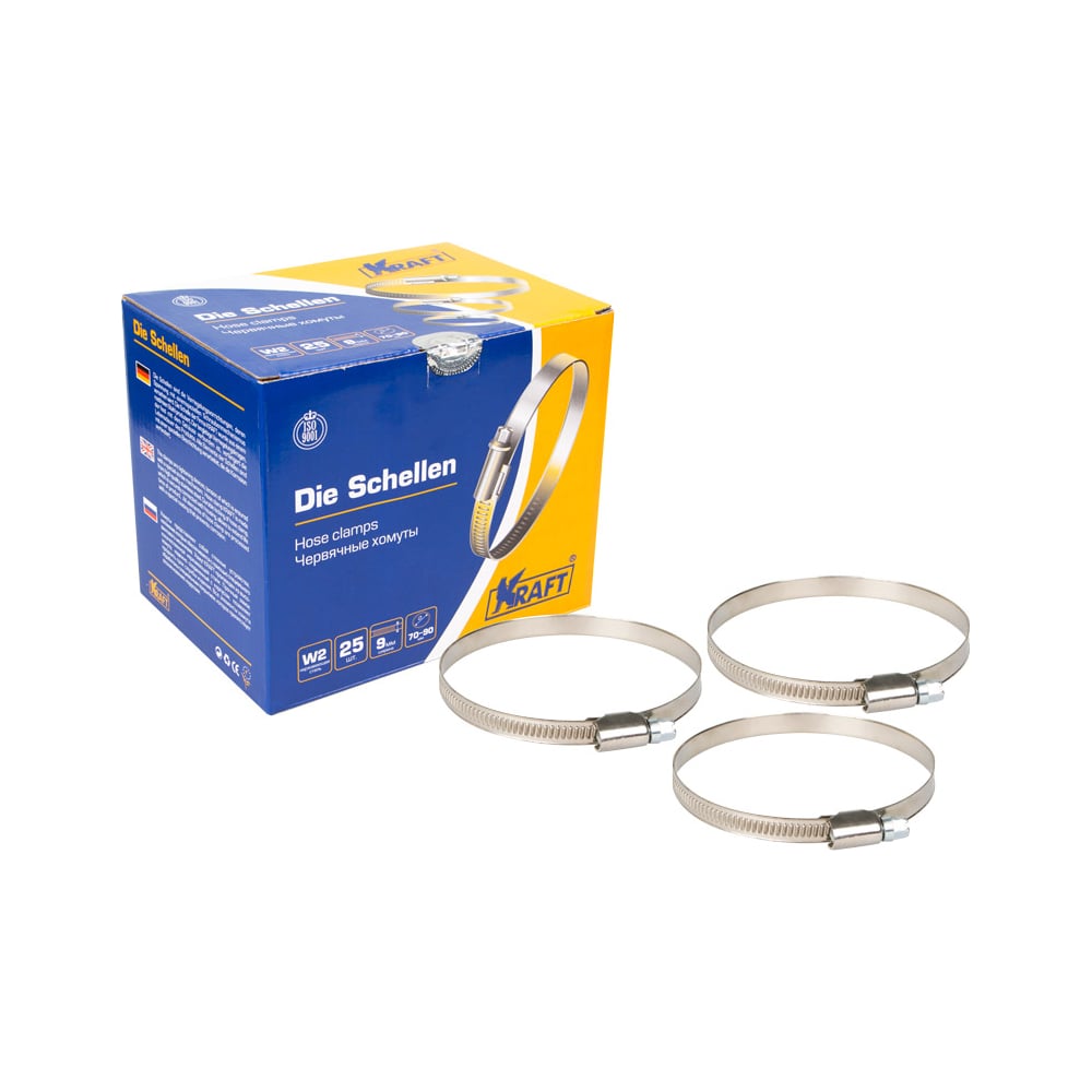 Хомут KRAFT 70-90 мм, нержавеющая сталь, уп. 25 шт. KT 880411