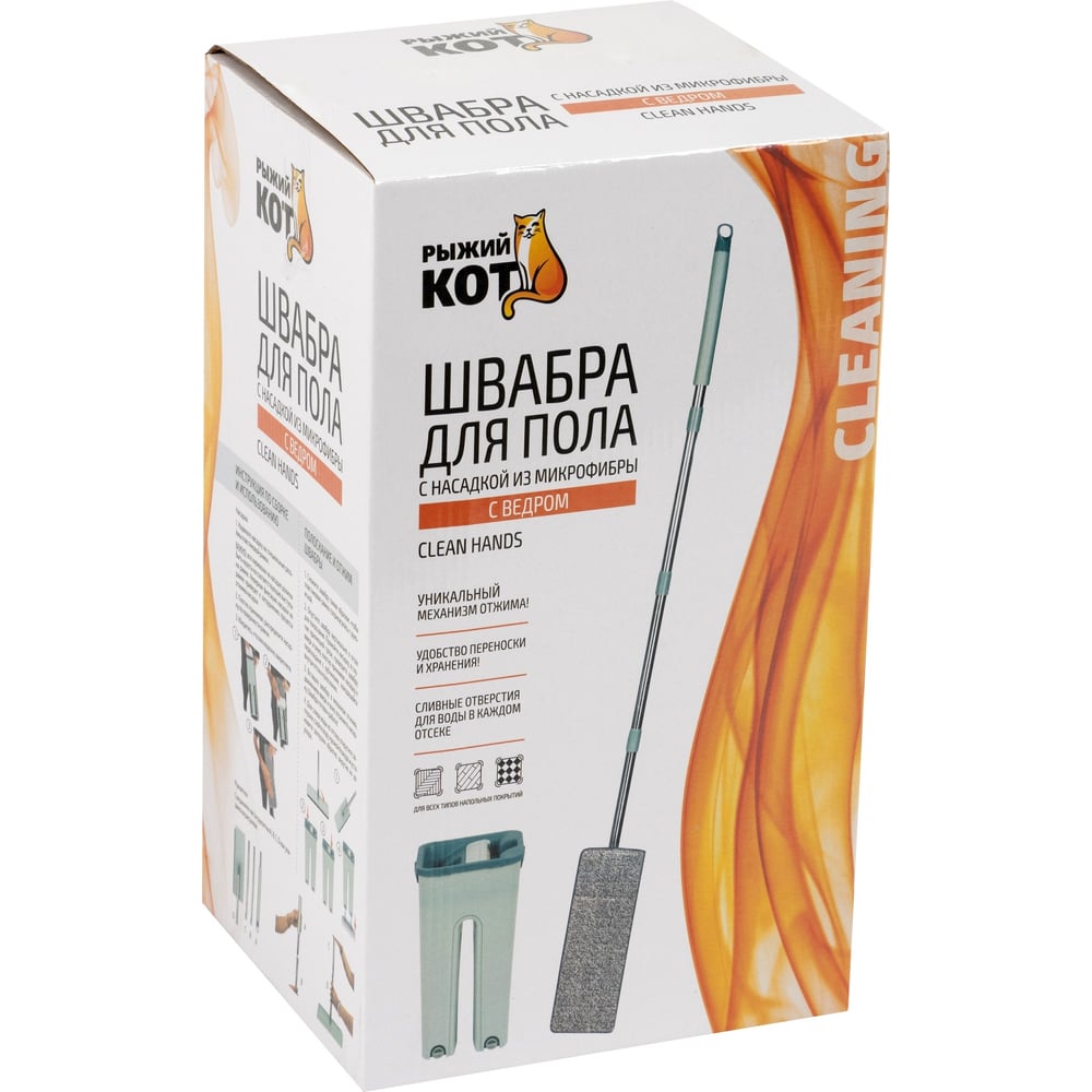 Швабра для пола Рыжий кот с насадкой из микрофибры и ведром Clean hands 310459