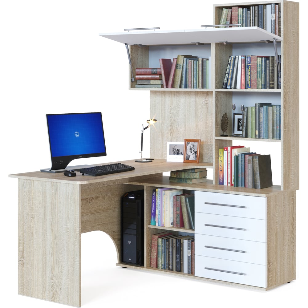 Компьютерный стол СОКОЛ правый дуб сонома/белый КСТ-14П КСТ14ПС5б6