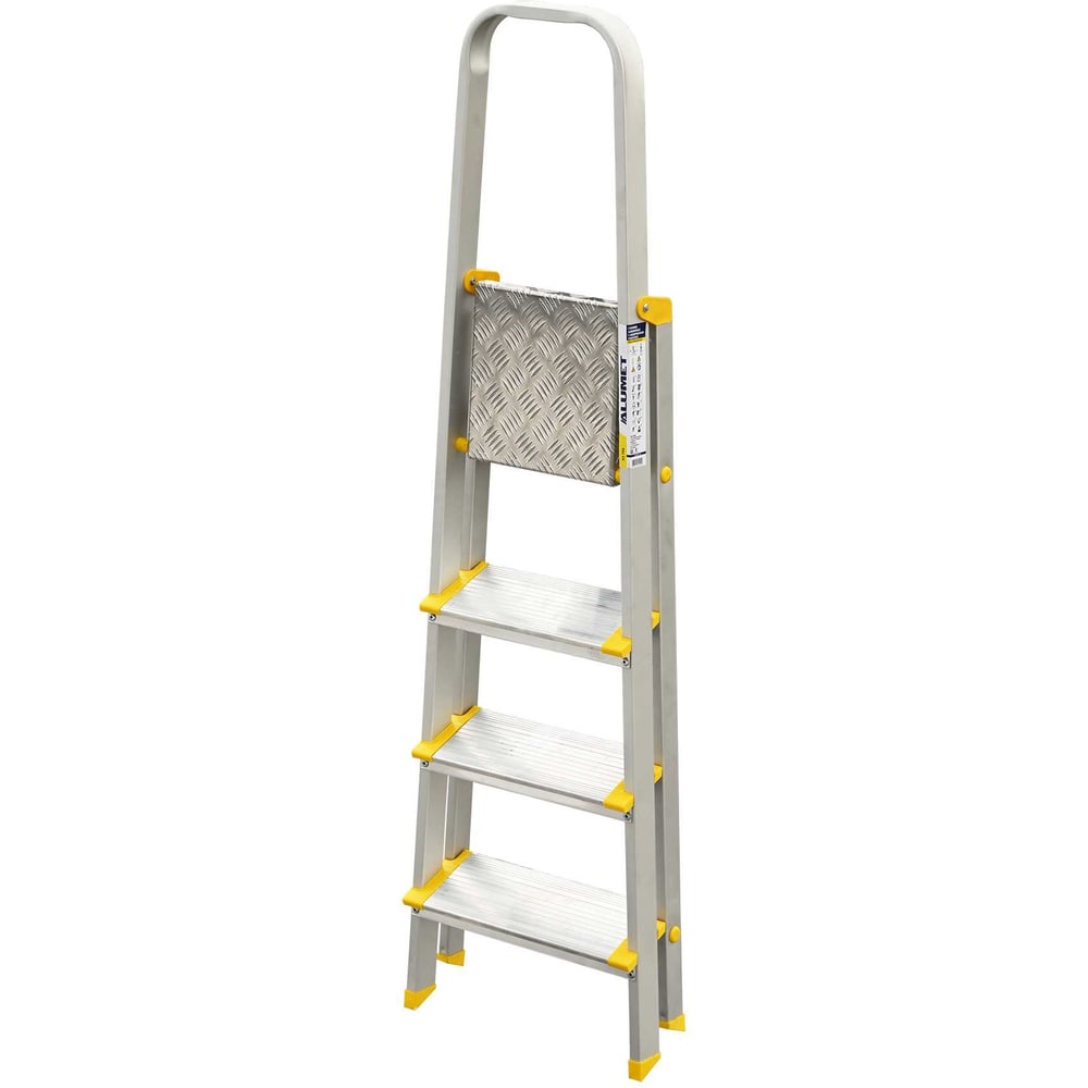 Алюминиевая стремянка Алюмет с анодированным покрытием профессиональная с широкими ступенями 4 ступени. Серия АS704