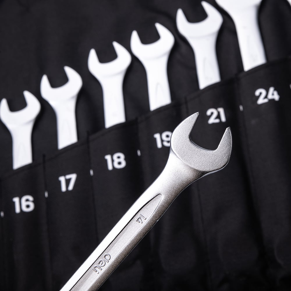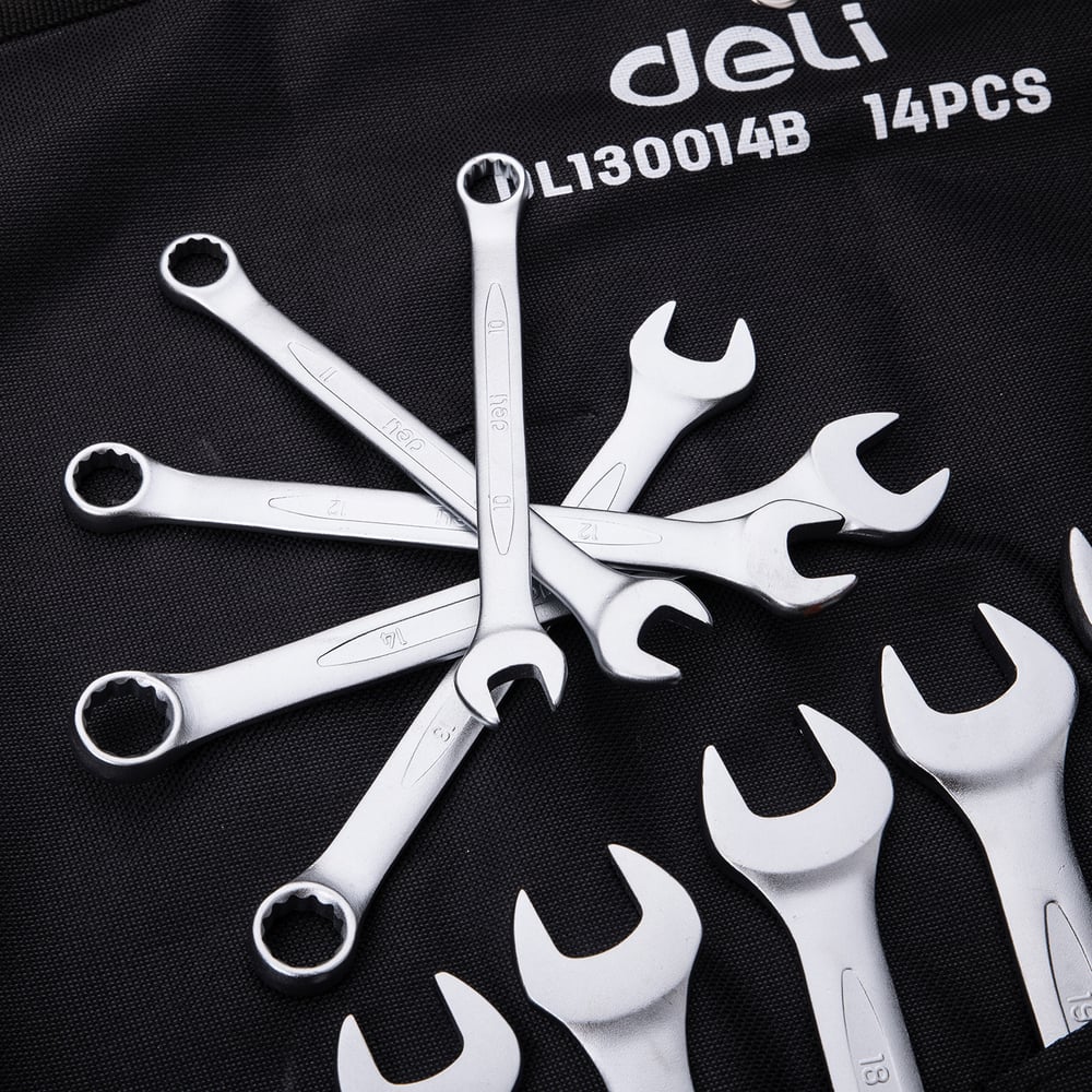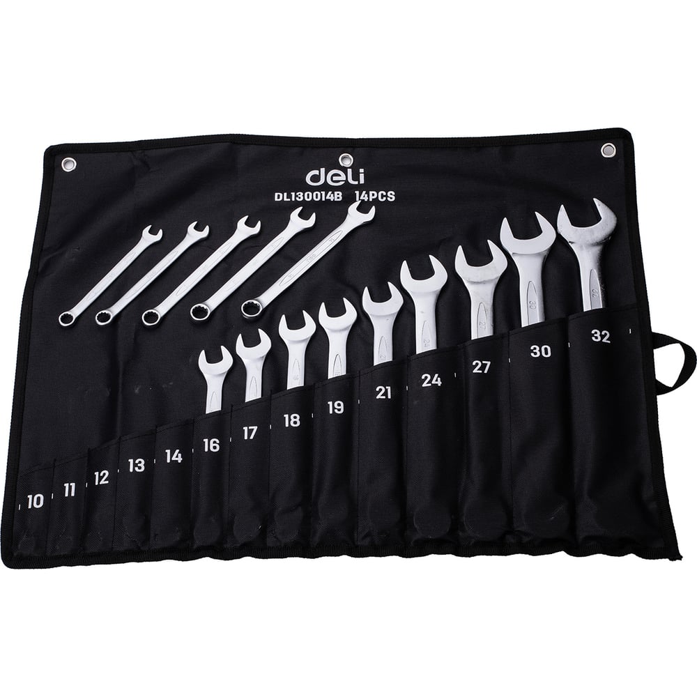 Набор комбинированных гаечных ключей DELI 10-32мм/14шт DL130014B (Сталь 40Cr, чехол из ткани oxford) 98322