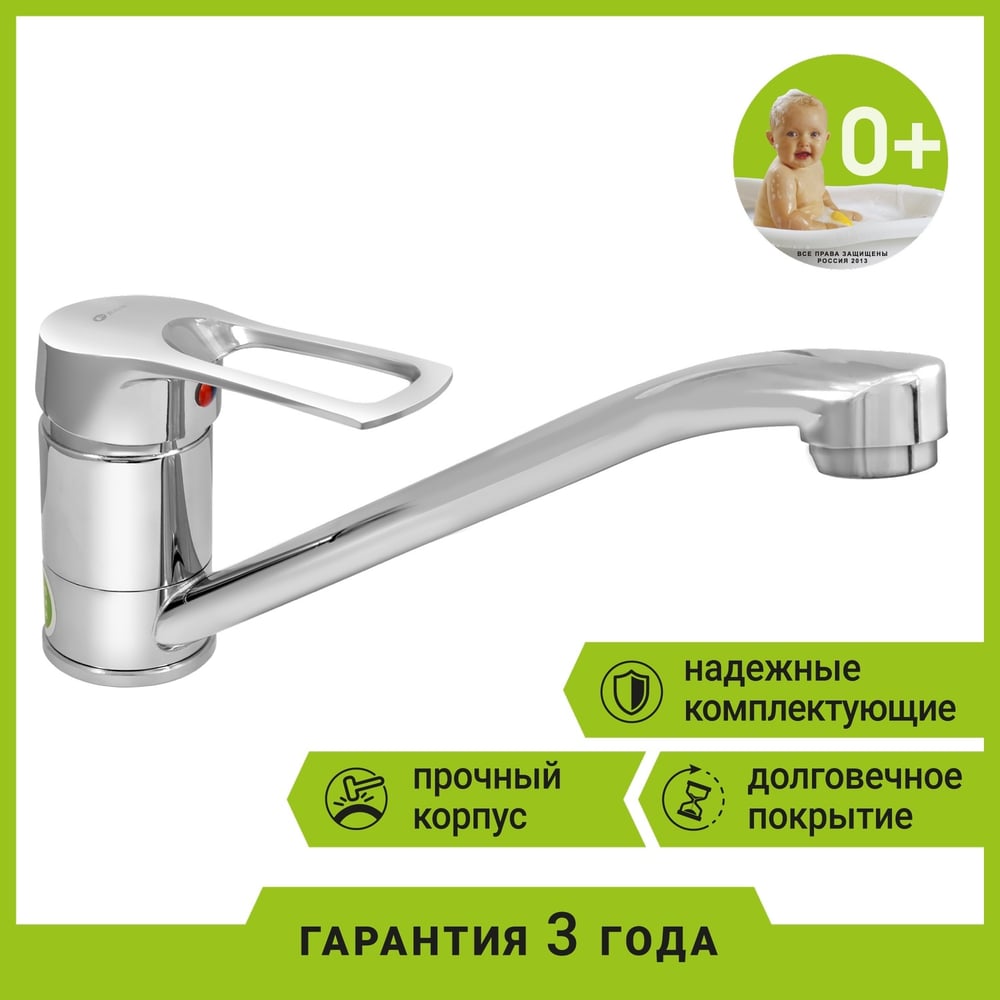 Смеситель для мойки Juguni одноручный, с гибкой подводкой, литой поворотный излив 250 мм 0402.789