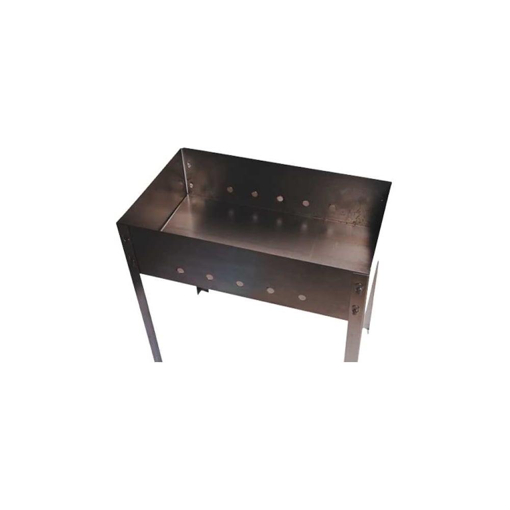 Габариты без упаковки 500х300х140 мм Высота 140 мм Длина 500 мм Ширина 300 мм Цвет серый Вид переносной Вес нетто 2.12 кг Материал корпуса металл Крышка нет Количество полок 0 шт Вертикальный нет Колесики нет Решетка в комплекте нет Кованый нет Столик нет Толщина стенок 0.5 мм Держатель под казан нет Вертел нет Шампуры нет Раздувайка нет Кочерга нет Разборный есть