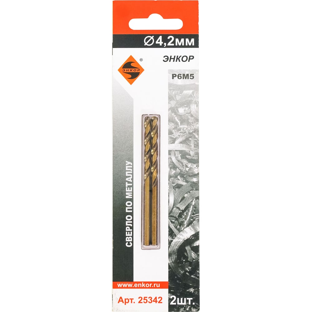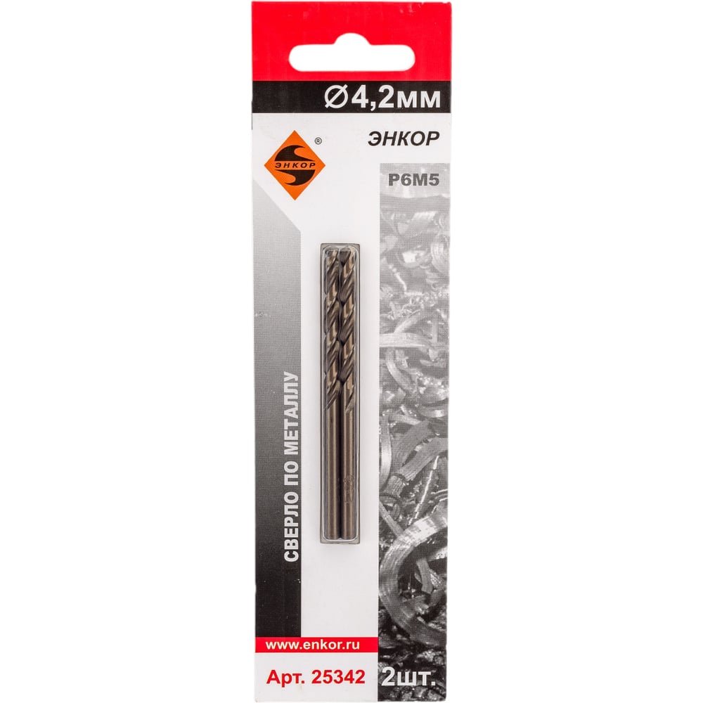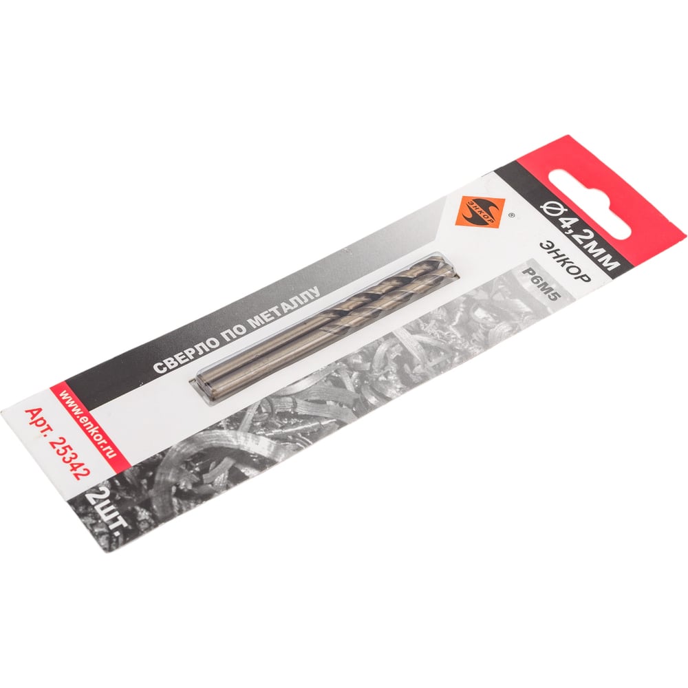 Сверло по металлу (4.2 мм; 2 шт; блистер) Р6М5 Энкор 25342