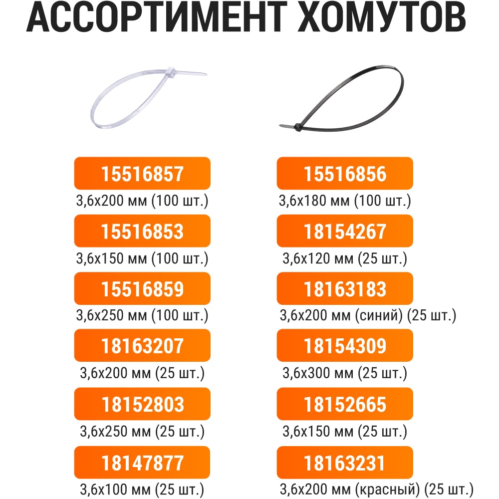Длина 300 мм Материал нейлон Ширина 3.6 мм Цвет белый Тип стяжка ГОСТ нет Фасовка 100 шт Многоразовые нет С маркировочной площадкой нет С отверстием (под саморез) нет С клипсой нет С двойным замком нет Стойкость к ультрафиолету да Температура монтажа Min -10 °С Температура монтажа Max 60 °С Рабочая температура Max 85 °С Рабочая температура Min -30 °С