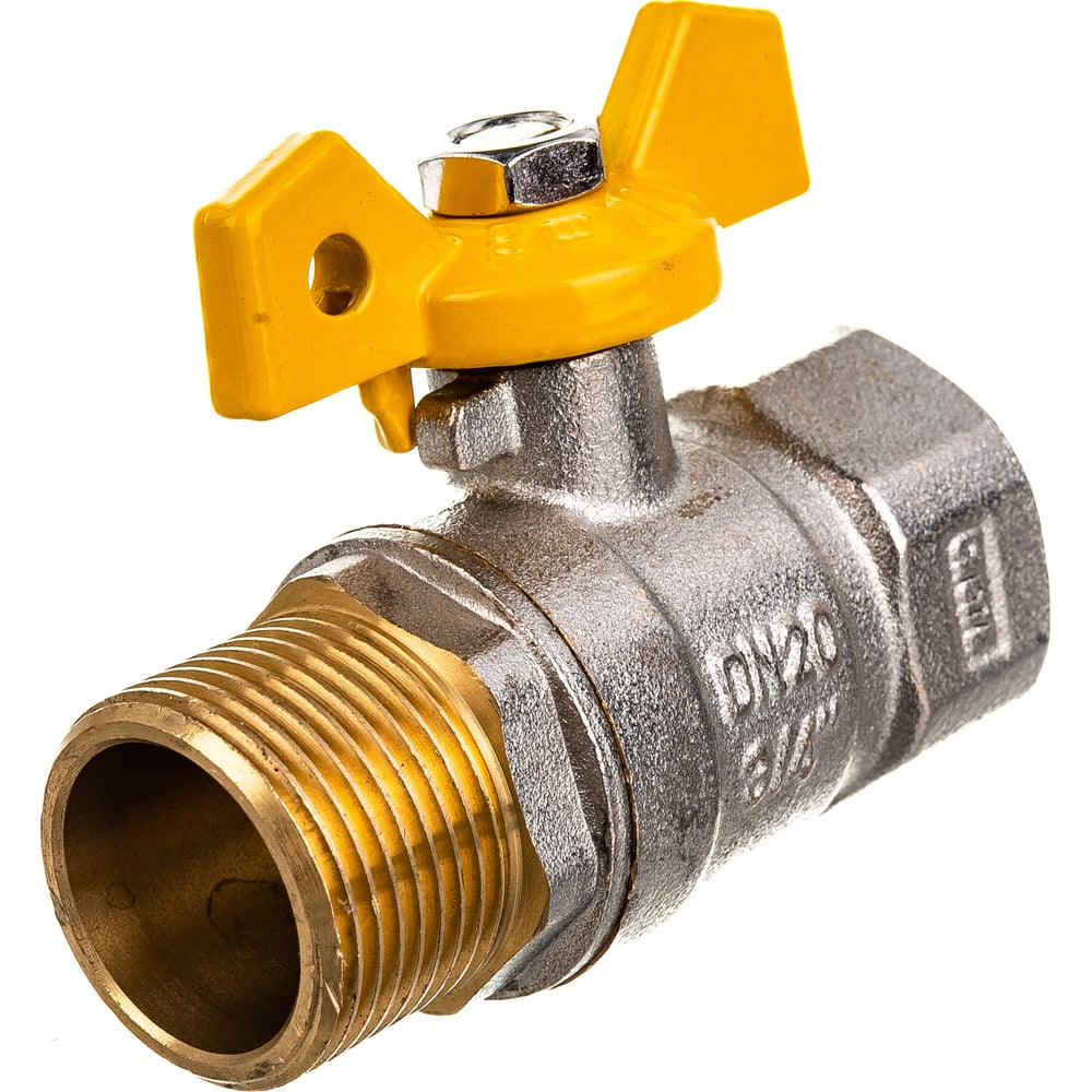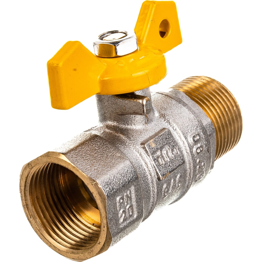 Тип резьбы 3/4F-3/4M Материал никелированная латунь Класс товара Бытовой Форма прямой Область применения вода, газ Радиаторный нет Тип ручки бабочка Тип арматуры запорная Тип присоединения резьбовой Тип корпуса неразборный Max температура применения 120 °С Газовый да С фильтром нет С термометром нет Полнопроходной нет Цвет флажка/бабочки желтый Резьба присоединения внутренняя - наружная Для подсоединения стиральной машины нет Для подсоединения манометра нет С креплением нет Номинальное давление (PN) 20 бар С носиком нет Спускное устройство нет