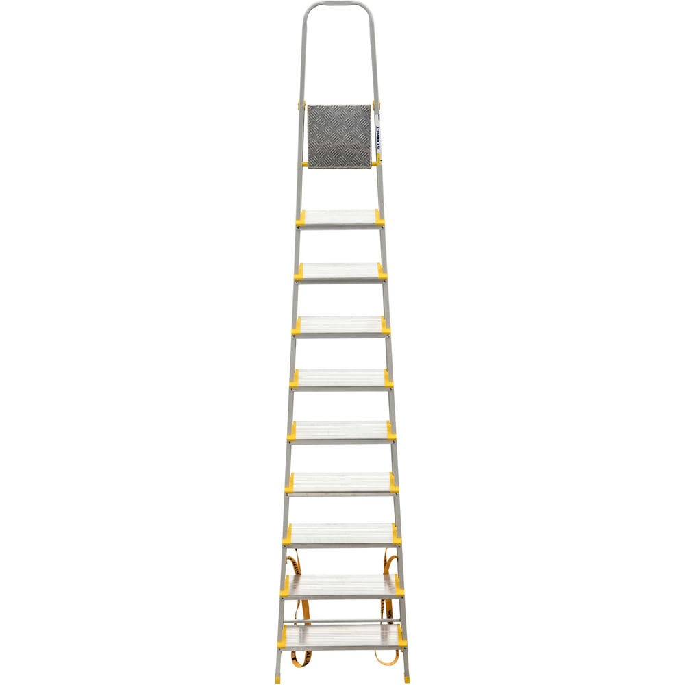 Алюминиевая профессиональная с анодированным покрытием стремянка Алюмет с широкими ступенями 10 ступеней. Серия АS710