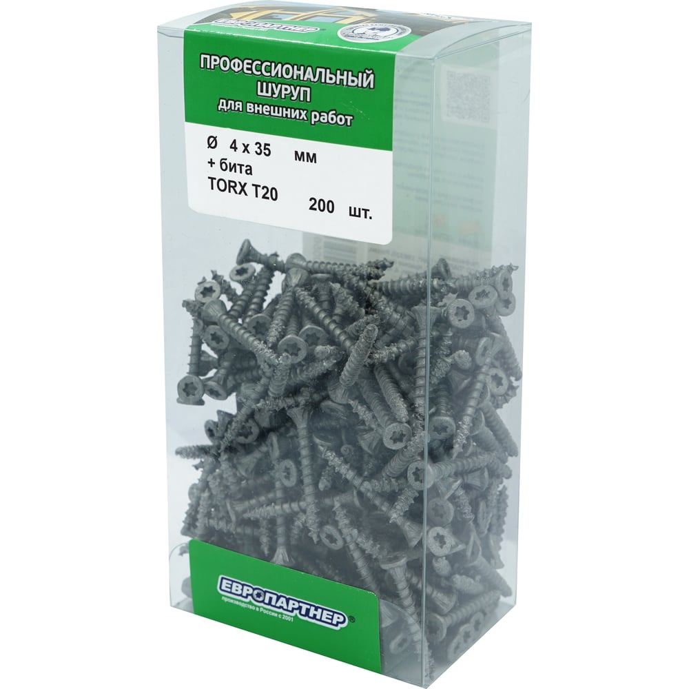 Усиленный саморез с антикоррозионным покрытием ЕВРОПАРТНЕР 4.0x35, TORX20 + бита, 200 шт. B3 0060