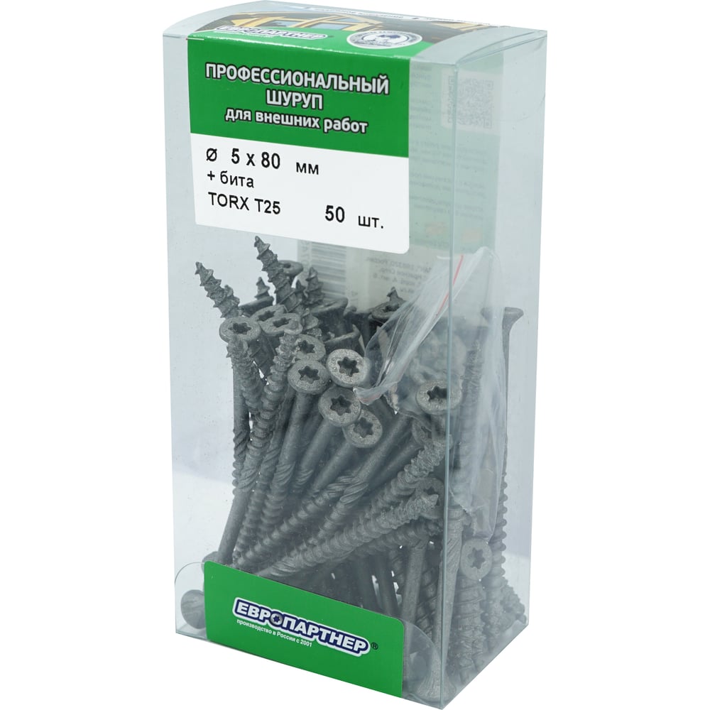 Усиленный саморез с антикоррозионным покрытием ЕВРОПАРТНЕР 5.0x80, TX-25 + бита, 50 шт. B3 0074