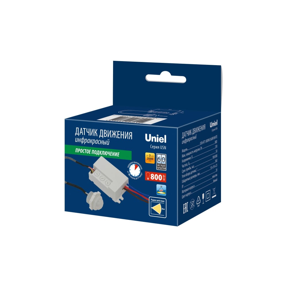 Датчик движения Uniel USN-R71 800W/360R WHITE UL-00009209