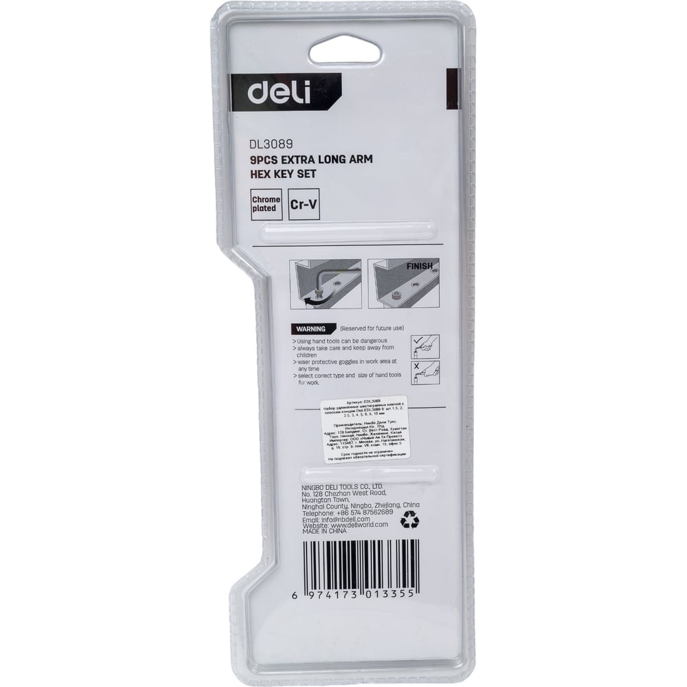 Набор сверхдлинных шестигранных ключей DELI dl3089 1,5-10 мм, материал Cr-V, 9 шт. 104478